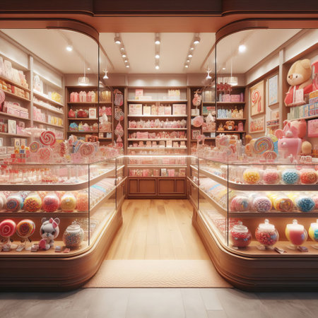 Explore a vibrant candy store filled with colorful sweets and treats. This delightful setting captures the joy and nostalgia of indulging in delicious confections.