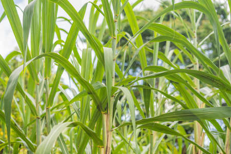 Sugar cane planted to produce sugar and food with blur background