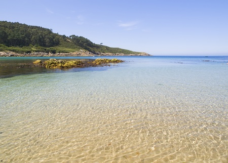 Beach paradise with water reflections. The picture was taken in Chanteiro beach (Galicia, Spain) and shows the reflections that occur in the water on a sunny summer morning