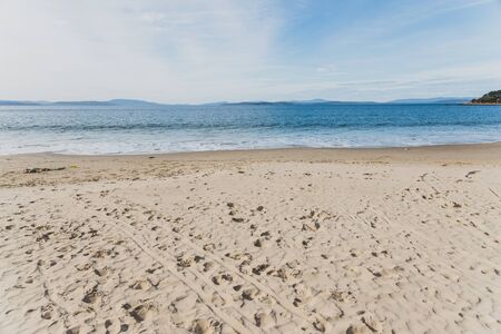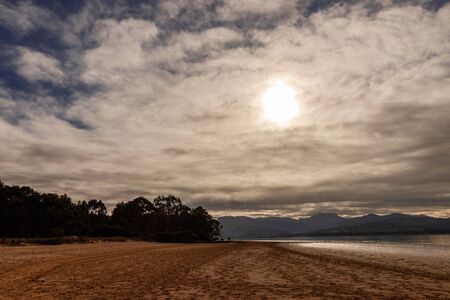 sunny Australian beach in Cremorne, Tasmania looking beautiful and deserted in winter