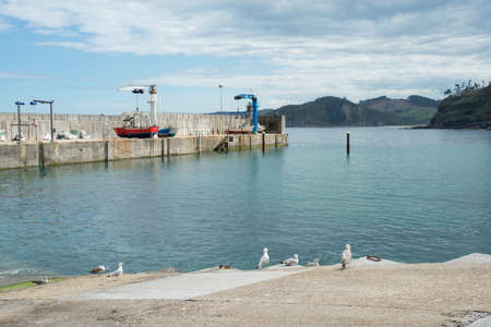 Nautical vessels out of water at Tazones dock. Asturias, Spain. Picturesque fishing village.