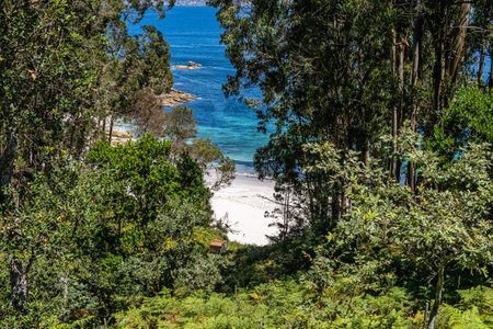 View of the Cies Islands in Galicia, Spain. National Park of the Atlantic Islands of Galicia.