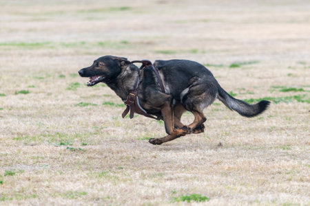 Barking Angry German Shepherd Dog On Training. Alsatian Wolf Dog