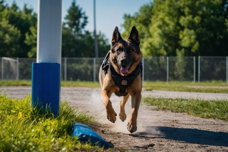 Cocoa, Florida / USA - October 12, 2019: A Cocoa Beach Police Department K9 team competes in the Space Coast Police K9 Competition.