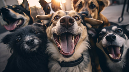 Capture the unique personalities of dogs in delightful selfie moments. Creating using generative AI tools
