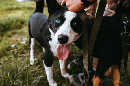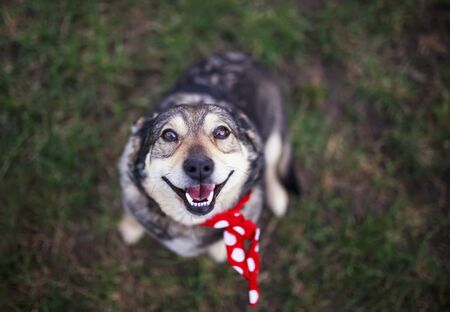 Portrait of a beautiful mixed breed dog in the park. Selective focus.
