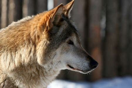 Wolf in winter. Profile portrait.