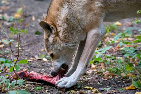 Close up of canis lupus or gray wolf in captivity