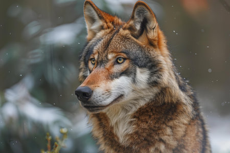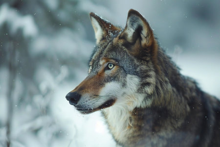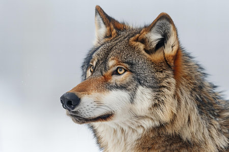 Portrait of a grey wolf in winter