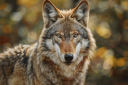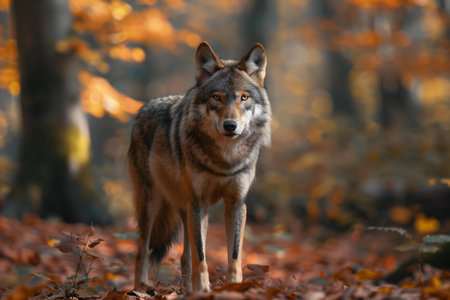 Grey wolf (Canis lupus) in the autumn forest