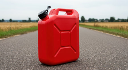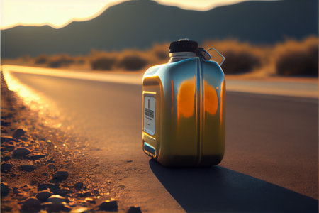 An image of a yellow plastic gas canister on the side of the road. Ai generative