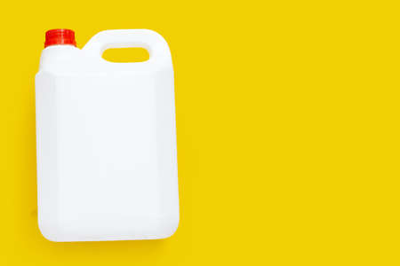 Blank packaging white plastic gallon on yellow background.