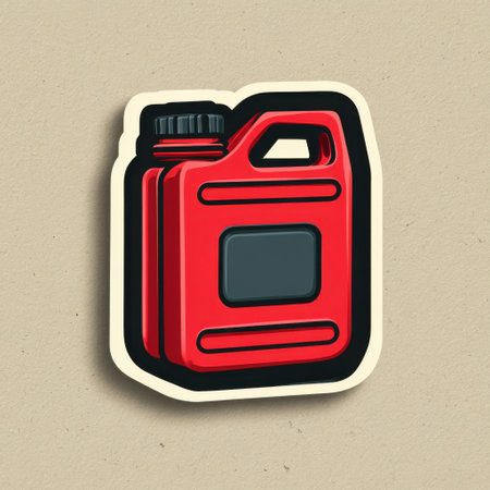 A vibrant red gasoline container is presented against a clean white backdrop. Its design is industrial, featuring a handle and a nozzle. The lighting is even, accentuating the smooth texture. Suitable for various visual projects and applications, it offers a sense of utility and resource.