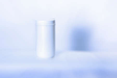 Pastel colored white plastic container on light table against blue wall Suitable for repair work cle