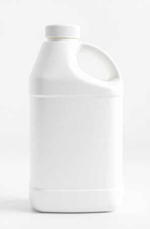 White Plastic Container for Liquid Storage with Handle and Screw Cap, Perfect for Household or Industrial Use, Isolated on White Background