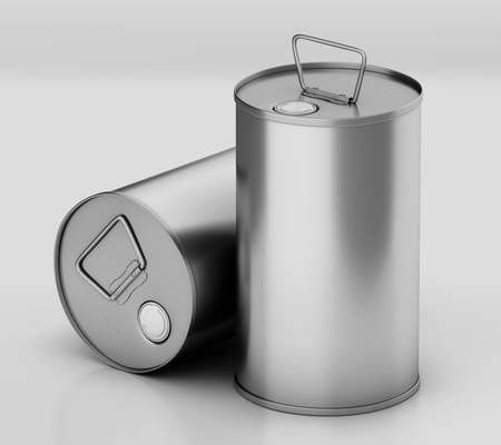Round Olive Oil Tin Can Mockup, Silver Liquid Container, 3d Rendered isolated on light background