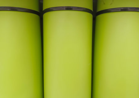 Plastic green canister, industrial packaging concept background