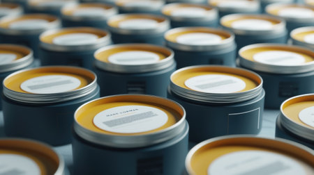 Dramatic abstract composition featuring a captivating arrangement of stacked canned food items highlighting vibrant lighting shadows and textures to create a visually striking and expression