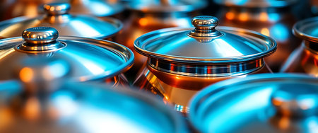 Modern stainless steel kitchen equipment for healthy cooking preparation generated by artificial intelligence