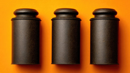 A trio of vintage-style black canisters arranged elegantly against a bright orange backdrop. Perfect for showcasing stylish storage solutions and home decor ideas.