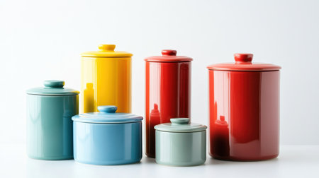 Trio of Ceramic Canisters with Airtight Seals on white background