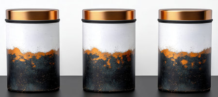 Stainless Steel Tea Containers on Black background. A high quality image making by generative ai.