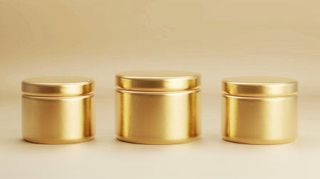 Set of empty cosmetic containers in gold color, 3D illustration
