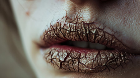 A close up of a womans lips with gold paint on them, AI