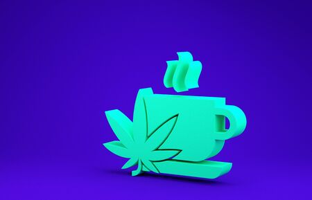 Green Cup tea with marijuana or cannabis leaf icon isolated on blue background. Marijuana legalization. Hemp symbol. Minimalism concept. 3d illustration 3D render