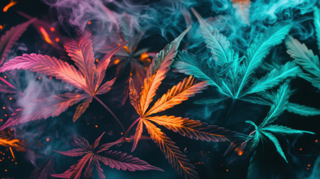 Marijuana leaves, cannabis on a dark background, beautiful background, indoor cultivation