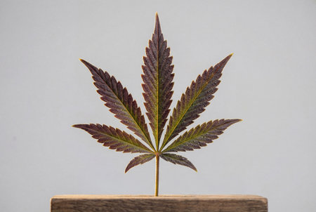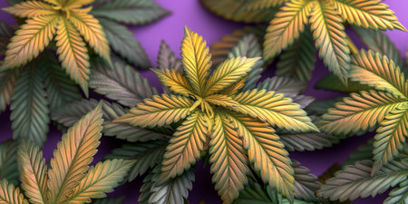 Natural rainbow mature cannabis, pot, marijuana leaf on off-white background