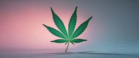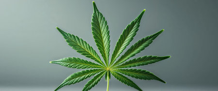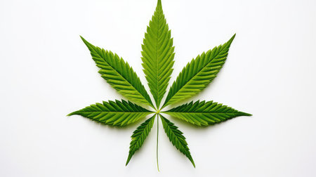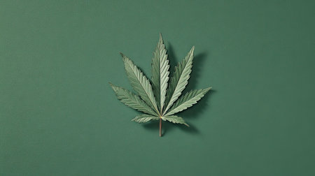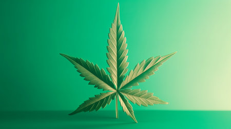A vibrant green cannabis leaf is positioned elegantly against a solid green background, representing wellness, nature, and botanical beauty in a minimalist style.