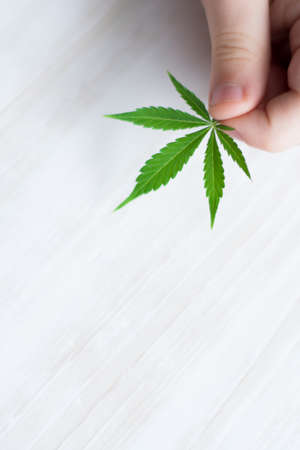 Marijuana leaf composition on a bright background. CBD Oil or hemp procuct ad, blogpost or print.