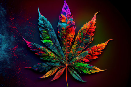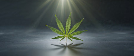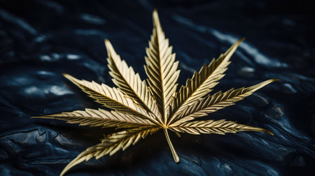 AI Generated. A leaf of marijuana is on a dark surface with a lot of light shining on it
