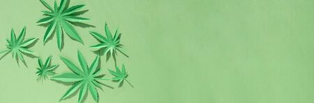 Happy 420, cannabis Indica leaf and marijuana background pattern concept theme with many artificial hemp leaves isolated on green backgrounds with copy space