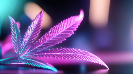 Abstract illustration of glowing cannabis leaf in pink and teal neon style