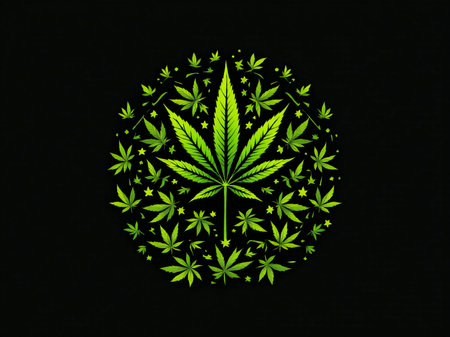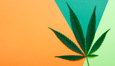 AI Generated. Cannabis Leaf Flat Lay with Green Background