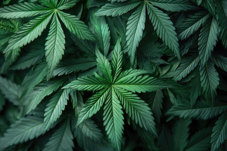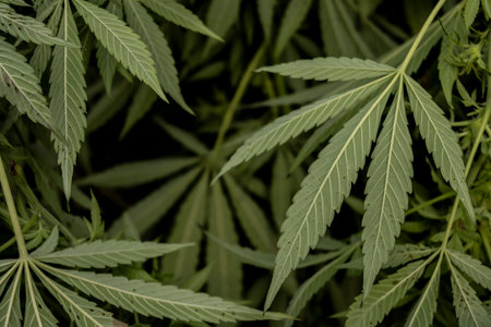 Cannabis leaf background. Green leaves of marijuana plant. Growing cannabis indica.