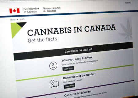 MONTREAL, CANADA - SEPTEMBER 13, 2018: Official web page on Government of Canada site about cannabis legalization. Marijuana to be legal in Canada starting October 17, 2018