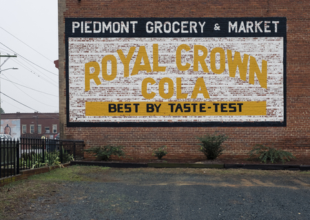 an historical document of Royal Crown Cola art mural in the Mount Gilead, North Carolina circa 2018 at Main Street