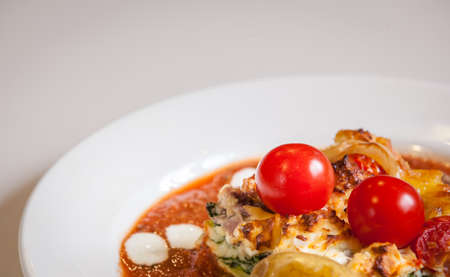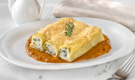 Cannelloni pasta stuffed with ricotta and spinach with tomato sauce