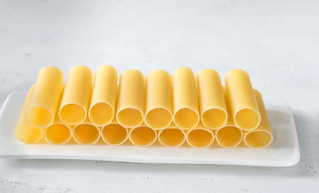 Uncooked cannelloni on the white plate