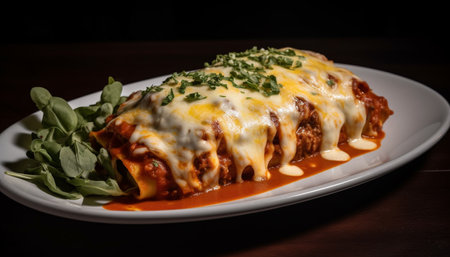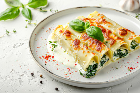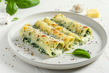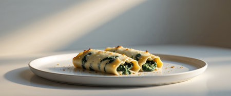 AI Generated. Delicious Spinach and Ricotta Cannelloni with Melted Mozzarella