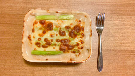Concept of delicious food, lasagna, top view