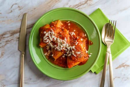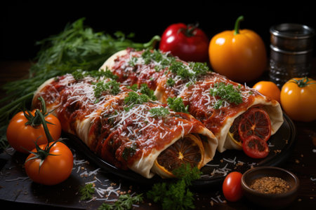 traditional italian cannelloni with tomato and peppers