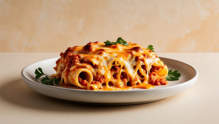 Freshly baked lasagna with healthy vegetable sauce generated by artificial intelligence