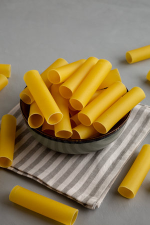 Raw Italian Cannelloni Pasta in a Bowl, side view.