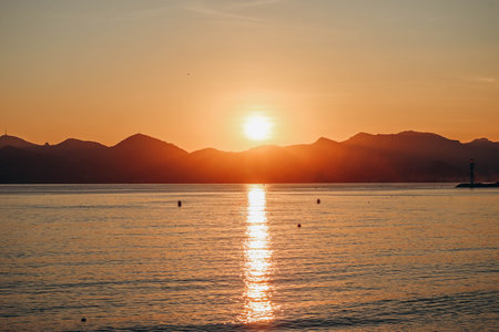 Cannes bay French riviera at sunset. France.