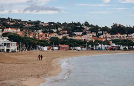 Sainte-Maxime, France - 28.12.2021 : Beach of Sainte Maxime on the French Riviera on a sunny winter day