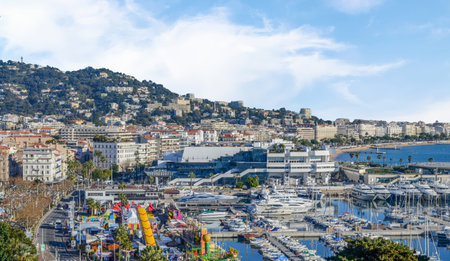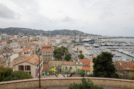 CANNES, FRANCE - JANUARY 29, 2024: Panorama of town of Cannes, Provence Alpes-Cote d'Azur, France